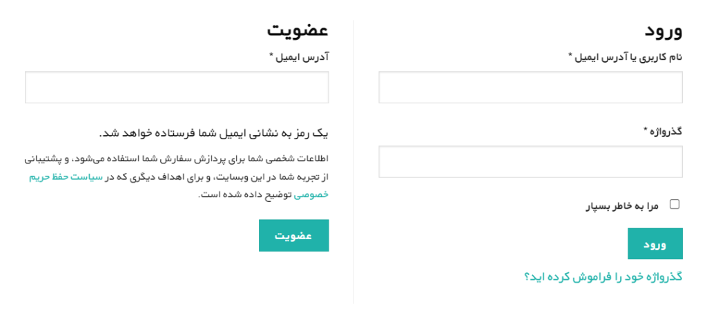 بعد از وارد کردن ایمیل و زدن دکمه عضویت وارد پیشخوان حساب کاربری خود میشوید که در آن جا میتوانید در قسمت جزئیات حساب سایر اطلاعات خود را وارد و رمز ورود خود را تغییر دهید(قسمت گذرواژه فعلی همان رمز عبوریست که برایتان ایمیل شده است). همچنین در آینده میتوانید از قسمت حساب کاربری سایر مشخصات خود را وارد یا ویرایش کنید همچنین خرید ها و سفارشات ثبت شده خود را ببینید.